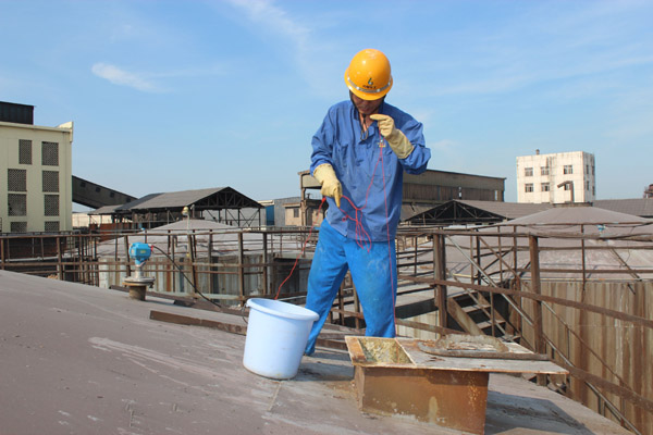 图一:7月24日,取样人员在该公司罐区车间2#硫酸罐顶部取硫酸样品。