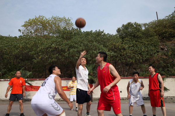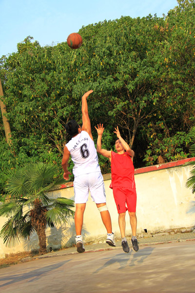 图片分别为销售员接力跑比赛和南北销区篮球赛比赛现场