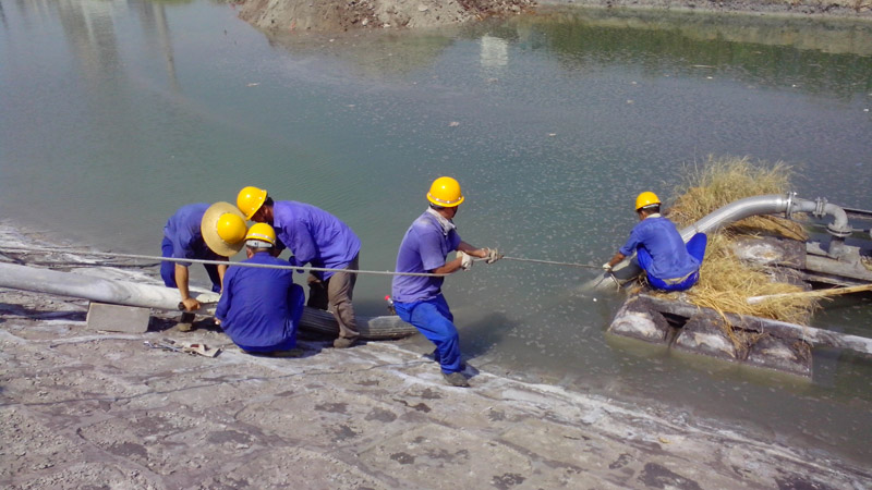为配合磷石膏堆场南部淋溶水环境整治项目的施工,8月11日上午,永利yl23411集团化工公司供水车间维修班员工顶着烈日、耐住高温,顺利完成了淋溶水泵一段近五十米管道的迁移工作。图为供水车间人员正在进行淋溶水管道的连接工作。