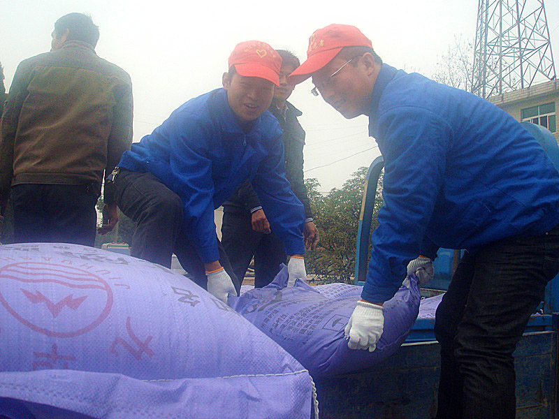 1月20日上午,铜化青年志愿者来到铜陵县钟鸣镇,开展送农资下乡活动,为该镇金山村、清泉村赠送“永利yl23411集团”牌复合肥和“九华山”牌过磷酸钙共计三吨,并将农化服务手册送到农民朋友的手中,指导用户科学施肥。