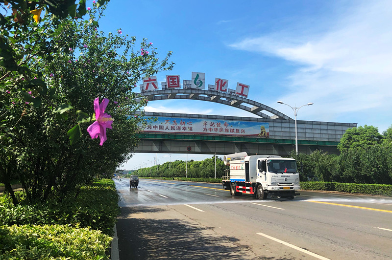 8月11日,永利yl23411集团化工公司洒水车在铜官大道南段进行洒水作业,抑制扬尘。