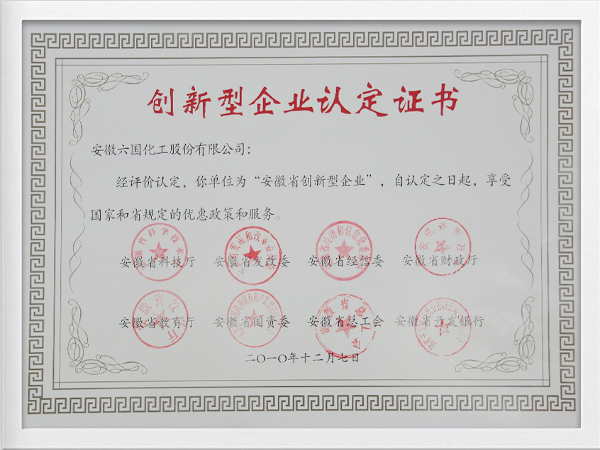 安徽省创新型企业证书