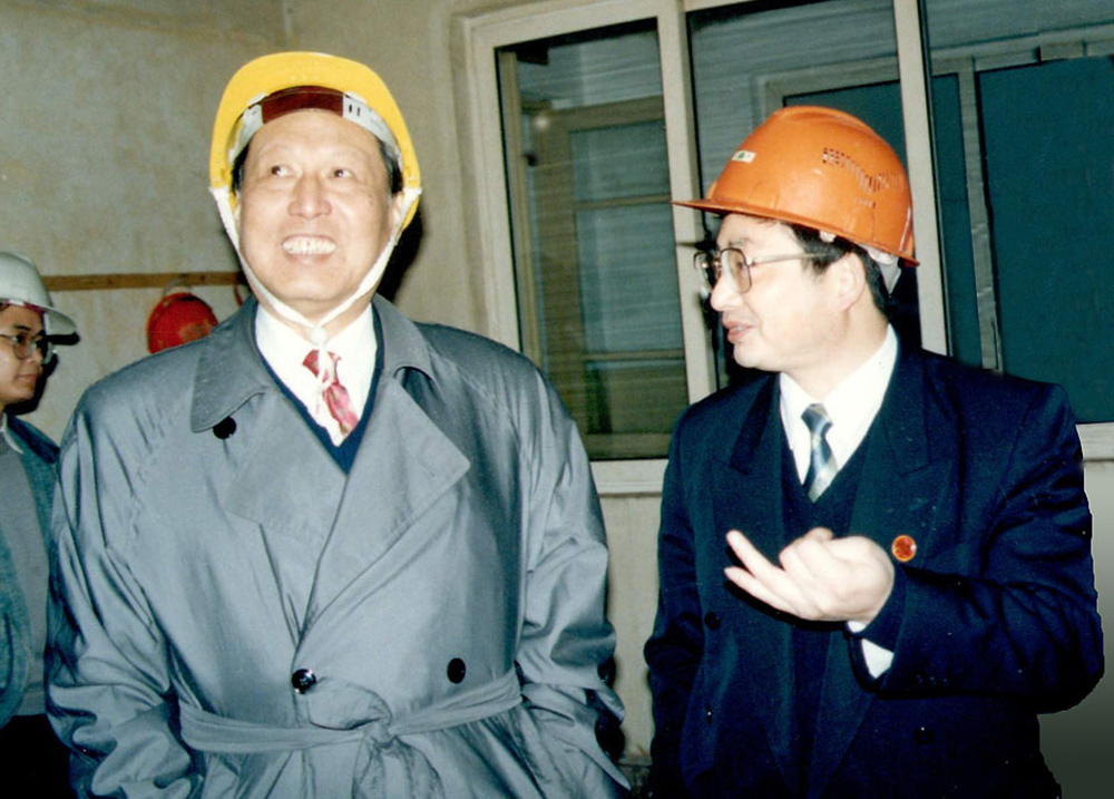 1997年4月3日,第九、十届全国人大常委会副委员长、化工部副部长成思危(左一)莅临公司视察。