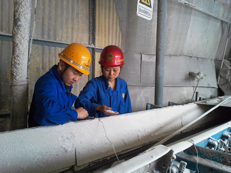 图三:岗位人员在出料口查看磷酸一铵成品
