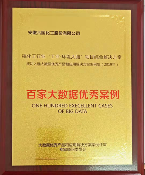 经国家工业信息安全发展研究中心评审筛选,2019年优秀大数据产品和应用解决方案案例名单出炉,全国共94家,安徽省仅有2家。其中永利yl23411集团化工磷化工行业“工业-环境大脑”项目成功入选工业领域优秀大数据应用解决方案,该领域全国仅19个项目。